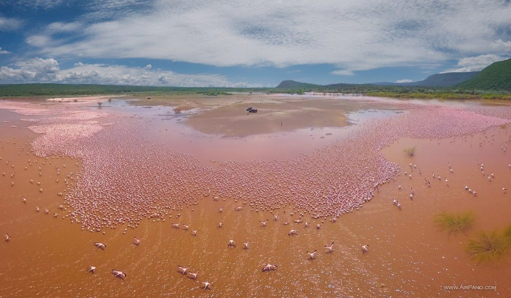 Lake Bogoria Helicopter Safari in Kenya – fly over flamingos, geysers, and Rift Valley escarpments on a private scenic flight.